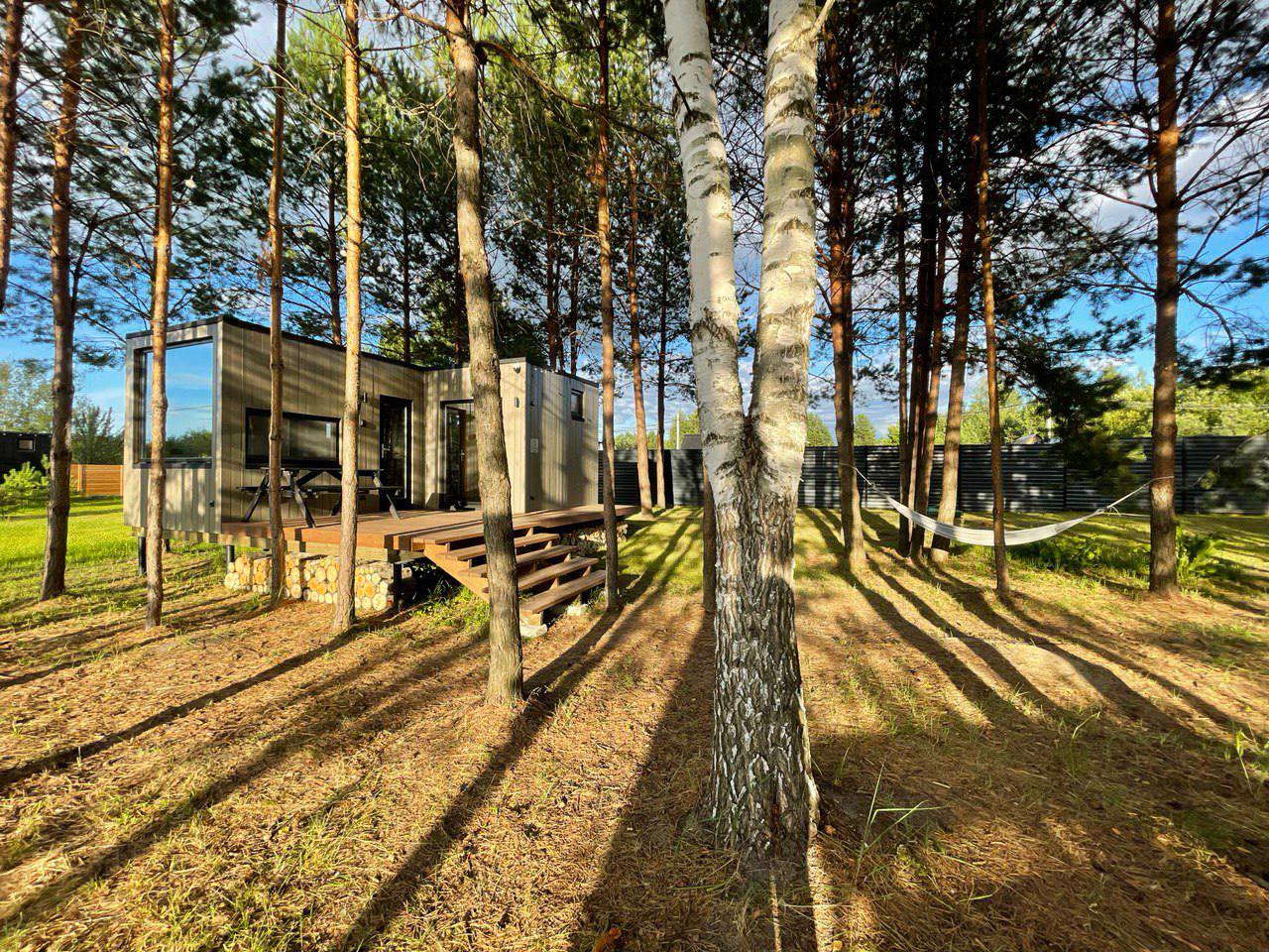 - Отдых на природе в комфортных условиях. Глэмпинг предлагает уютные домики со всеми удобствами, включая душ, туалет и кондиционер.